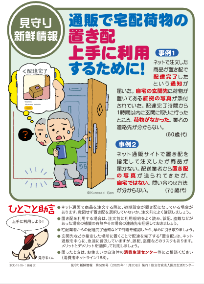 配達しました、と通知がきたが、荷物がなかった。また、連絡先が分からない等の被害が多くなっています。置き配を希望するときは、誤配、盗難などがあった場合の補償の有無やその場合の連絡先を把握しておきましょう。