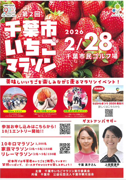 美味しいいちごを楽しみながら走るマラソンイベントが開催されます。